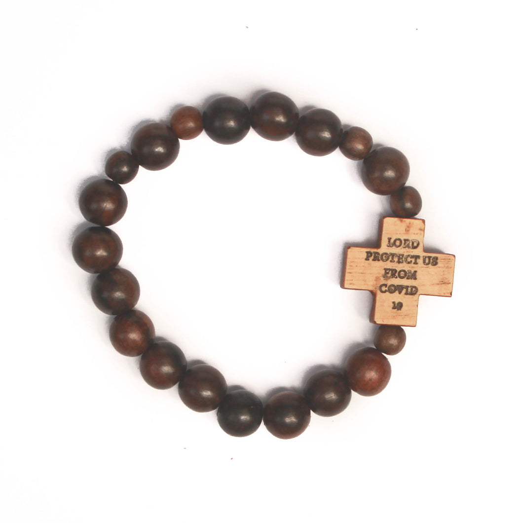 • Hardwood rosary bracelet with "Lord Protect Us From COVID 19" cast on the cross.